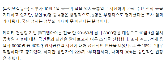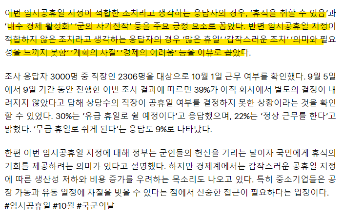 "쉬라고 해도 싫다네"…임시공휴일 지정에 국민 22% '부정적'