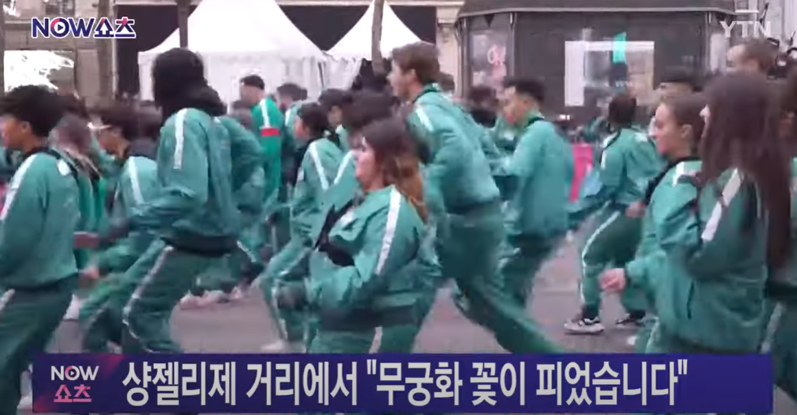 오는 26일 '오징어 게임' 시즌 2 공개를 앞두고 파리 샹젤리제 거리에서 "무궁화 꽃이 피었습니다" 게임이 펼쳐졌습니다.