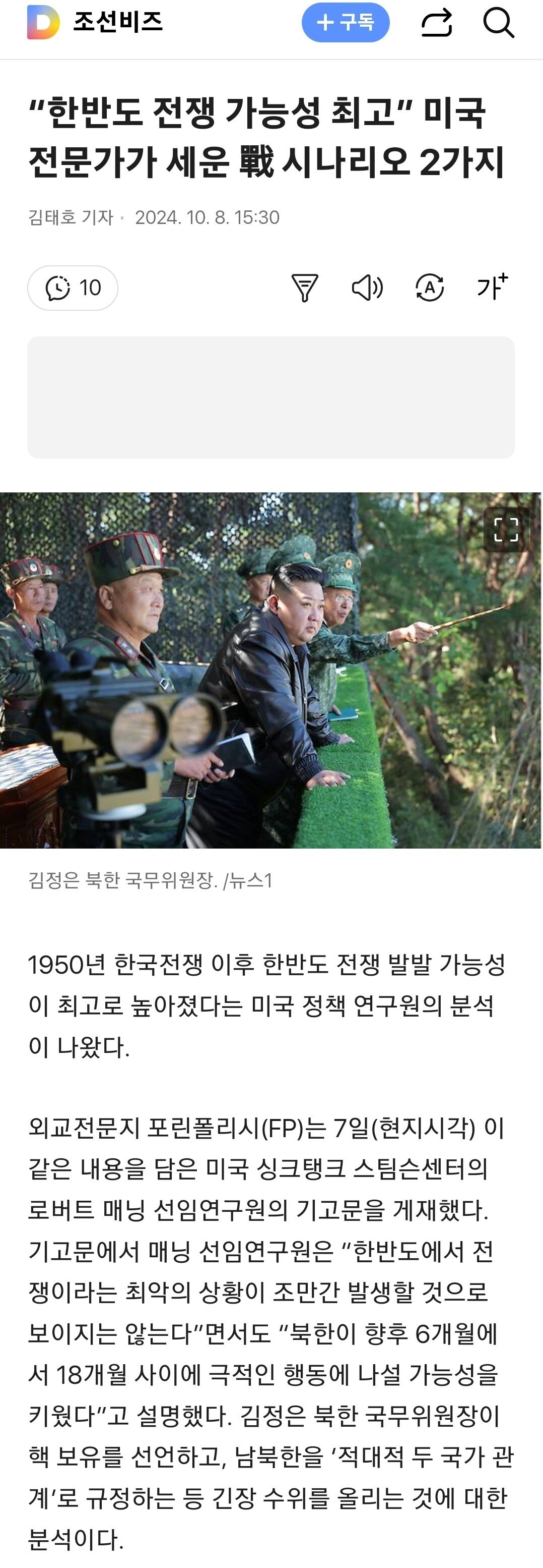 “한반도 전쟁 가능성 최고” 미국 전문가가 세운 戰 시나리오 2가지
