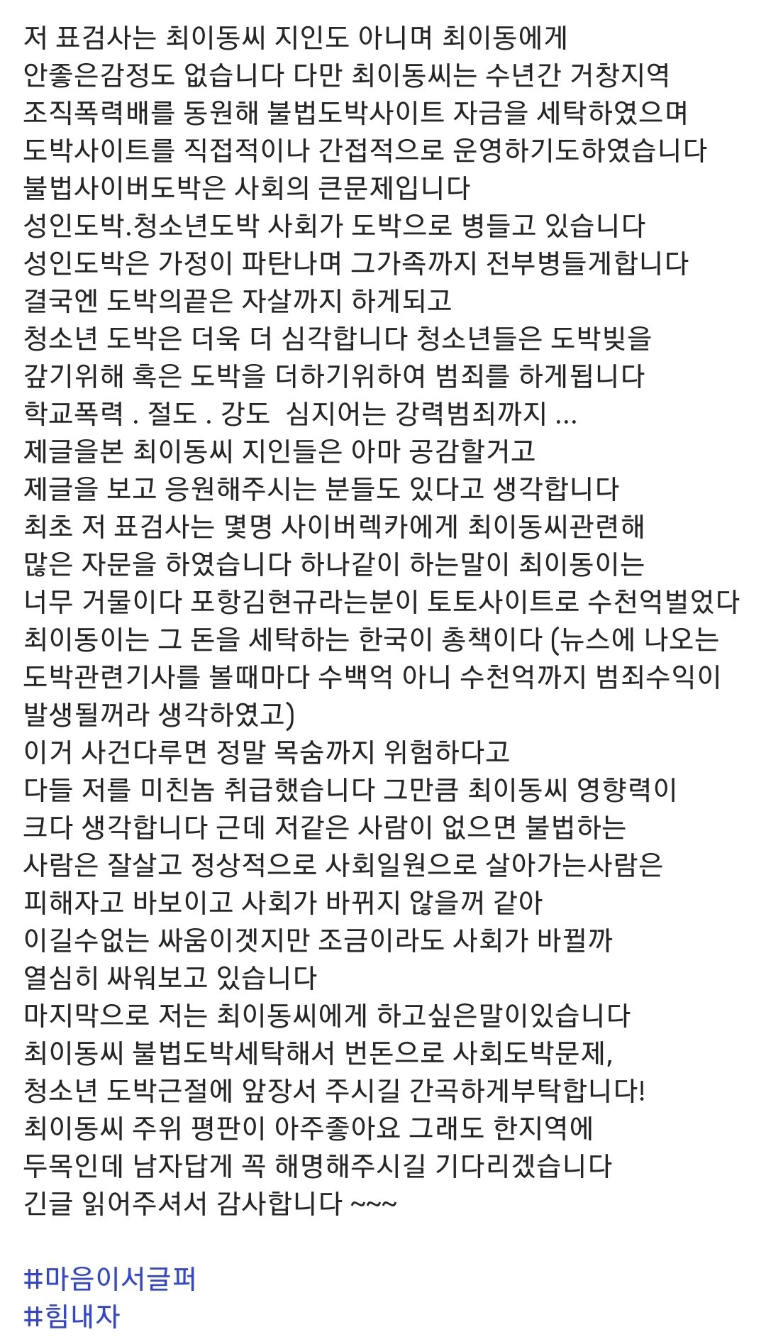 이게 검사의 글이 맞나 싶을 만큼 대충 적었음.
