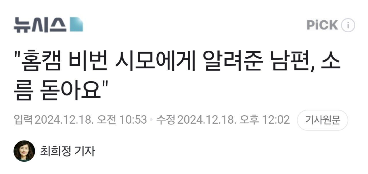 홈캠 비번 시모에게 알려준 남편, 소름 돋아요