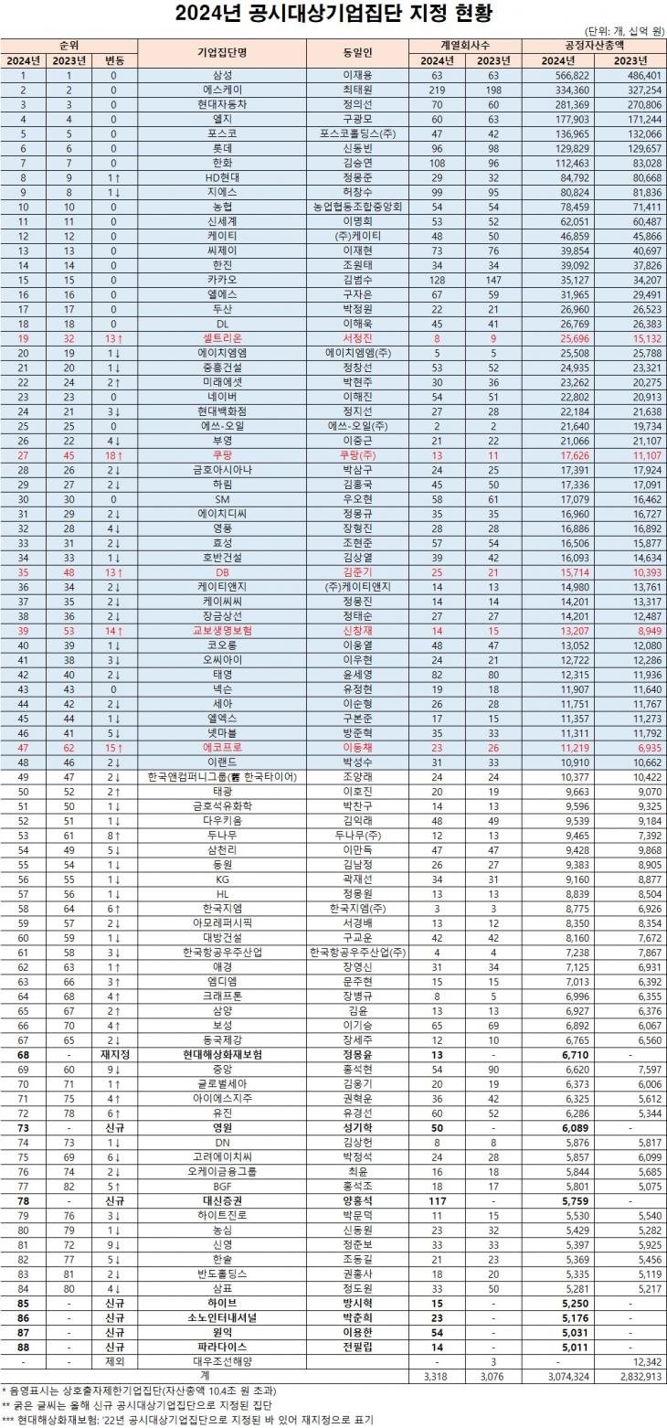 오늘 발표된 재계서열 순위..ㄷㄷ