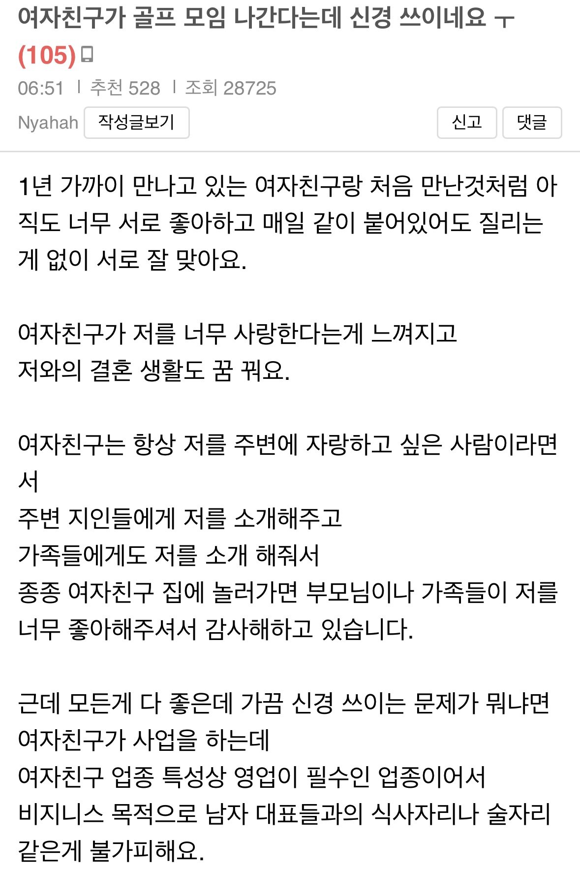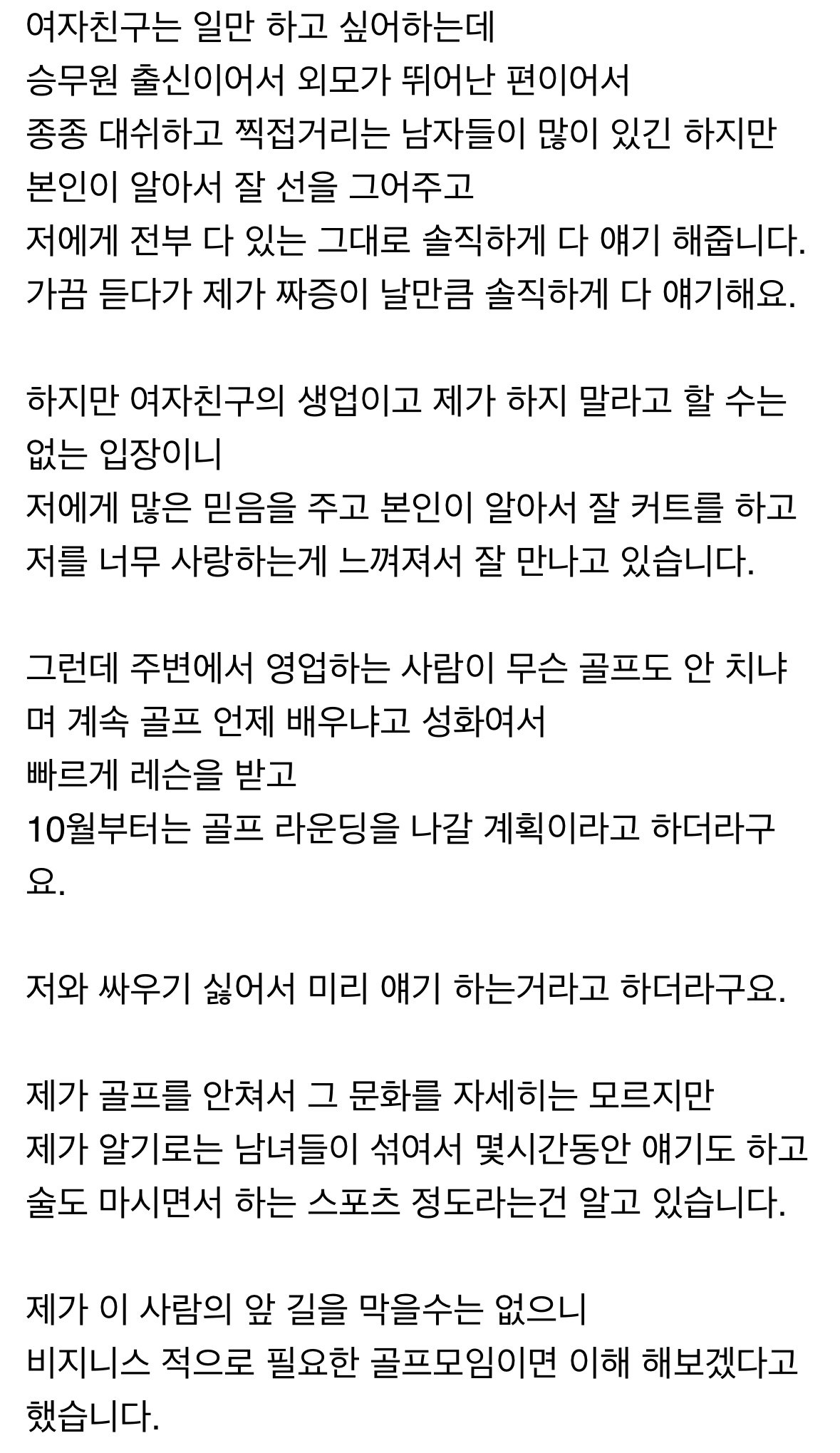 보배)여자친구가 골프 모임 나간다는데 신경 쓰이네요 ㅜ.jpg