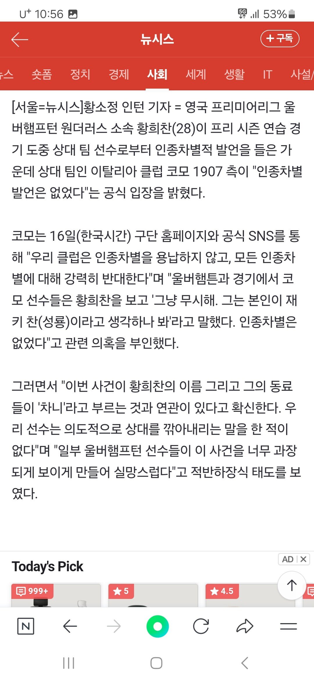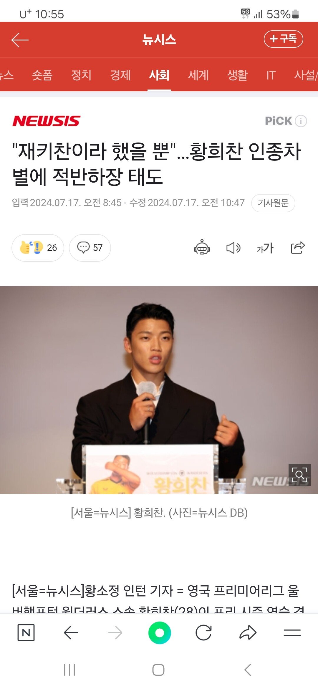 "재키 찬이라 했을 뿐" 황희찬에 인종차별 안했다