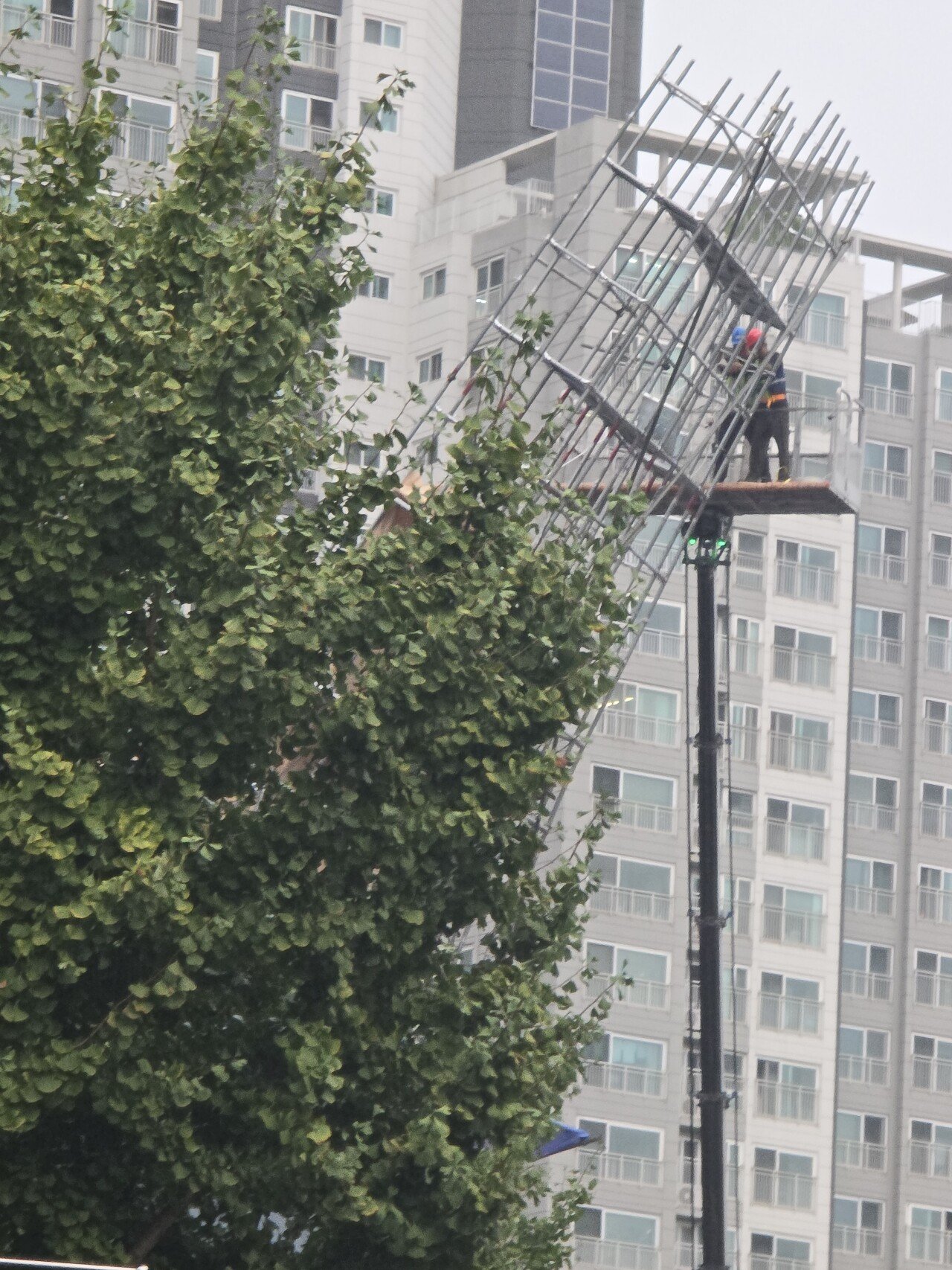 무너지는 거 크레인으로 잡고있음