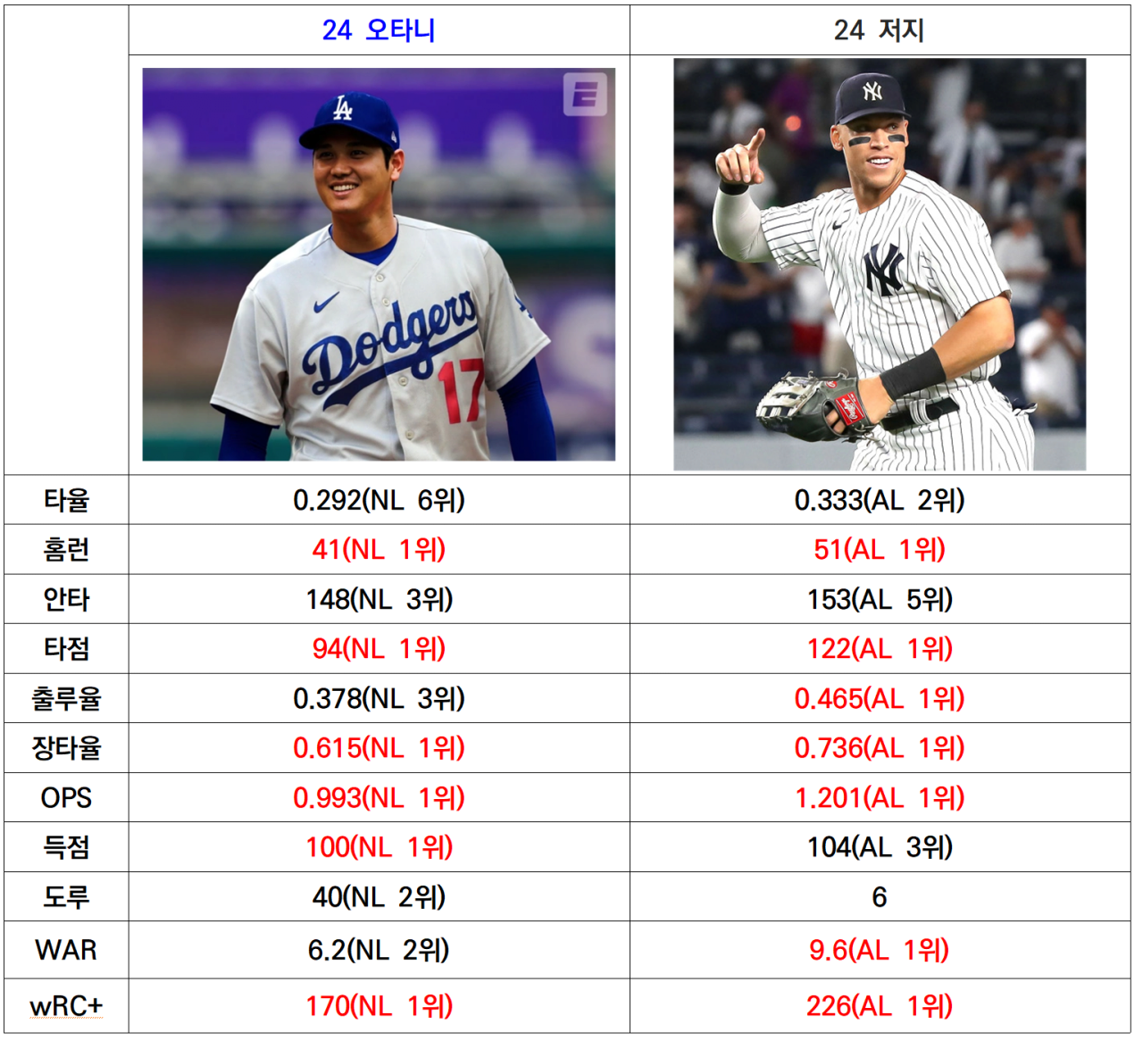 올해 MLB 양대리그 MVP가 유력한 두 선수 비교..JPG