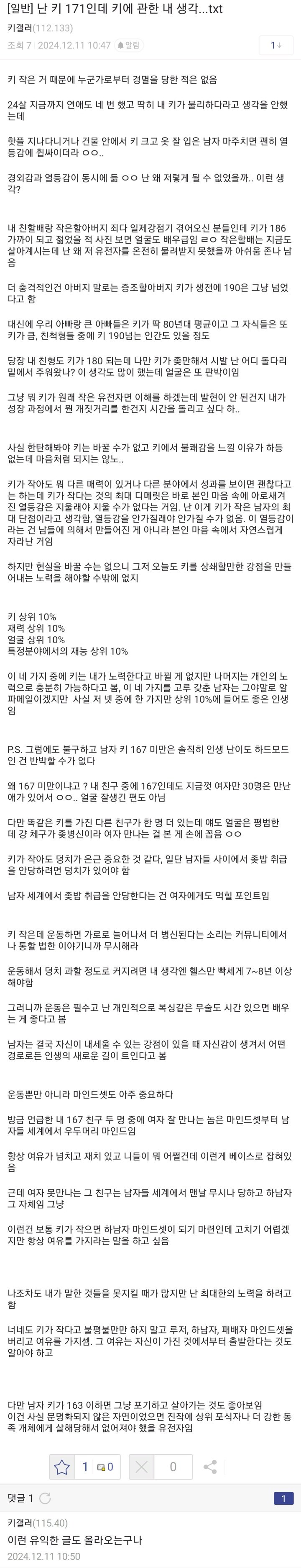 난 키 171인데 키에 관한 내 생각