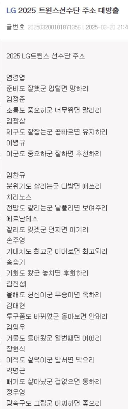 엠팍... 악의없으신 쥐퐁티형님의 25시즌 분석