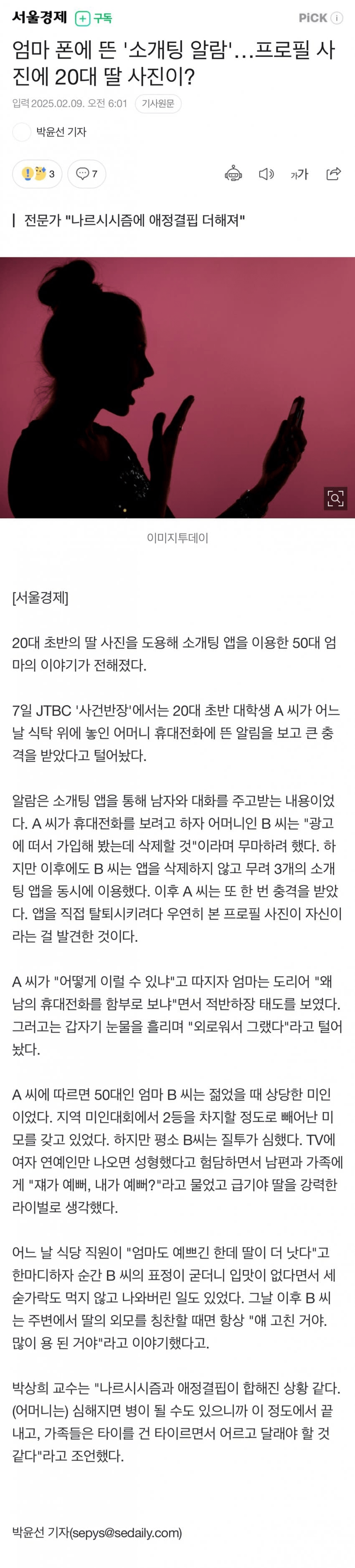 엄마 폰에 뜬 '소개팅 알람'…프로필 사진에 20대 딸 사진이?