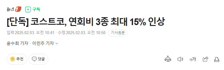 [단독] 코스트코, 연회비 3종 최대 15% 인상