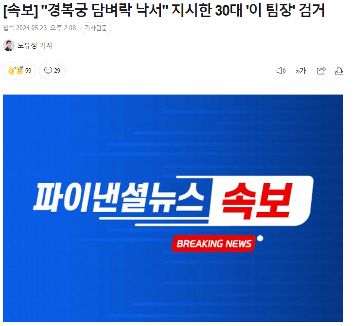 [속보] "경복궁 담벼락 낙서" 지시한 30대 '이 팀장' 검거