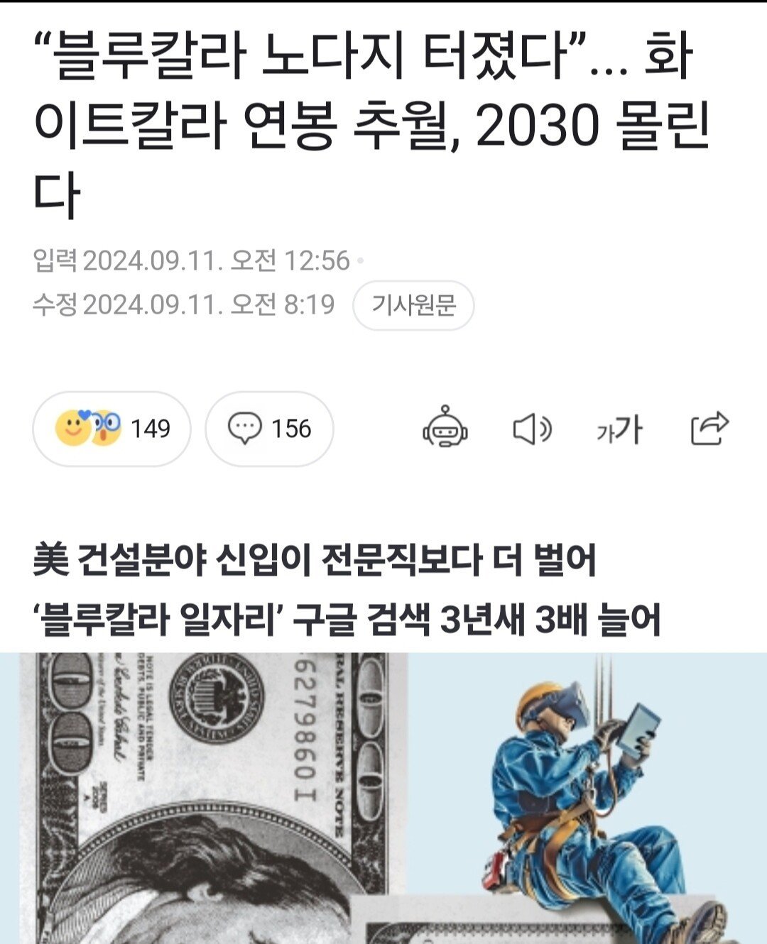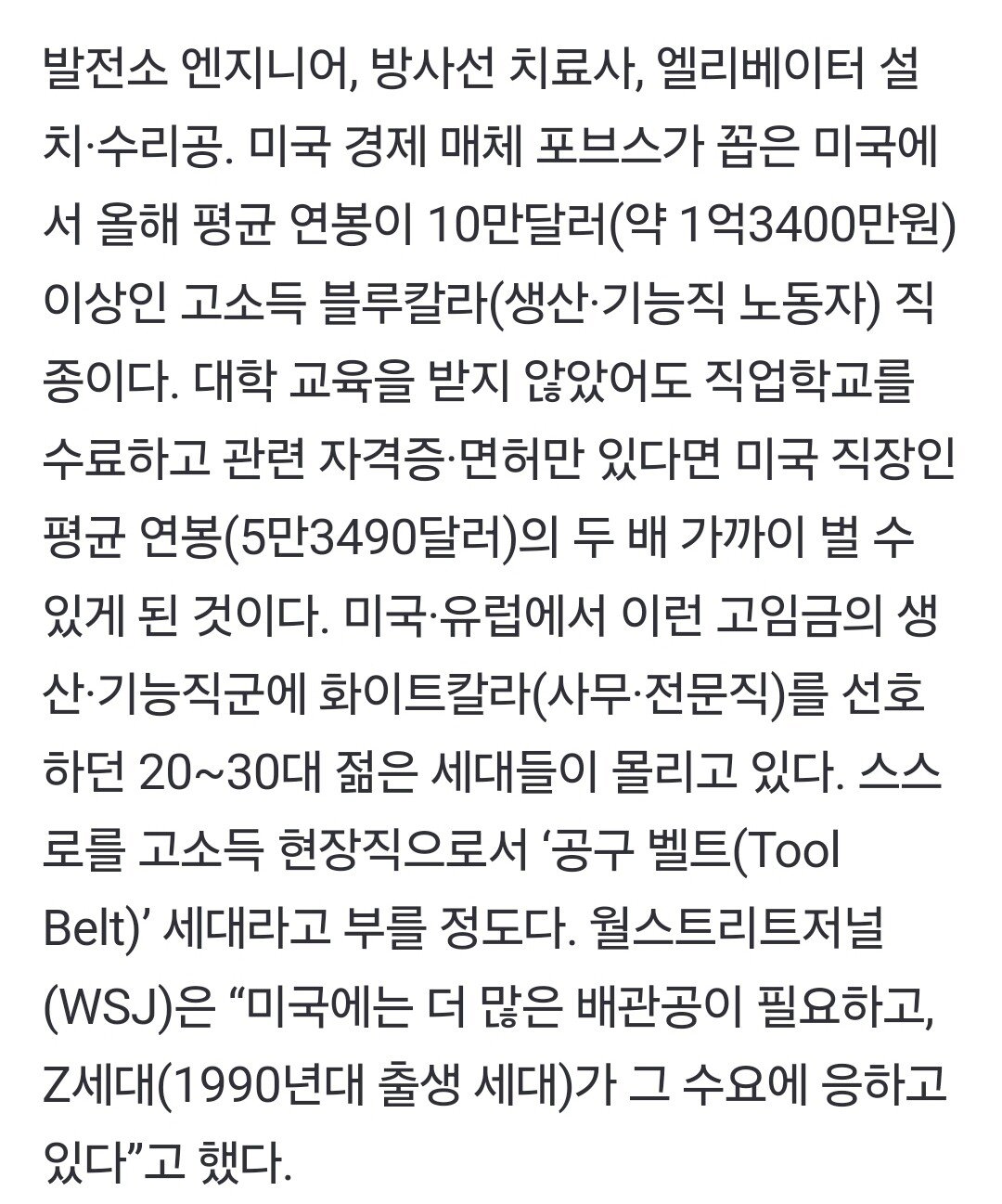 사무직보다 현장직을 선호한다는 요즘 미국 2030세대들