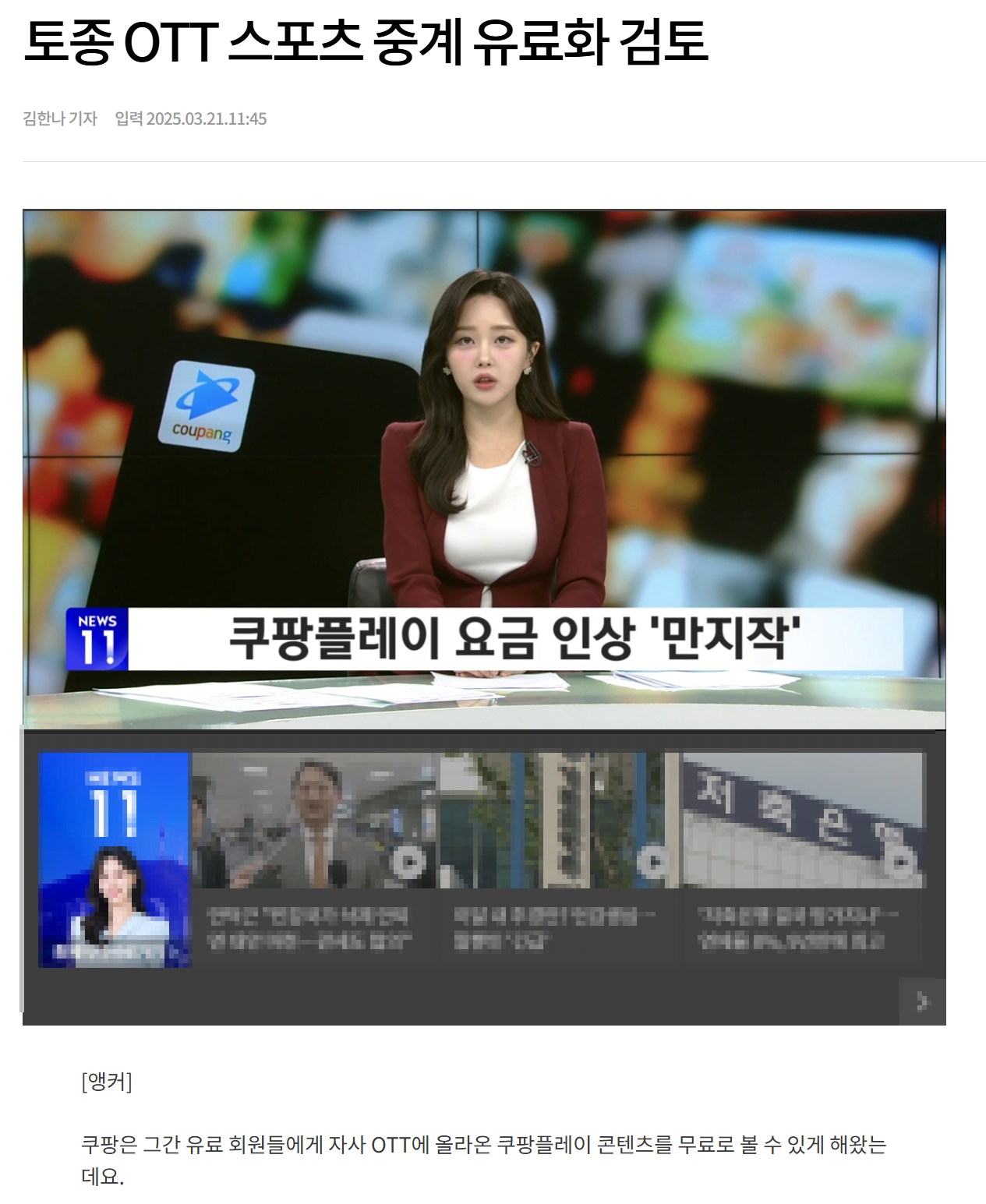 김한나 기자, 쿠팡플레이를 별도로 돈을 내고 볼 수 있다고요?