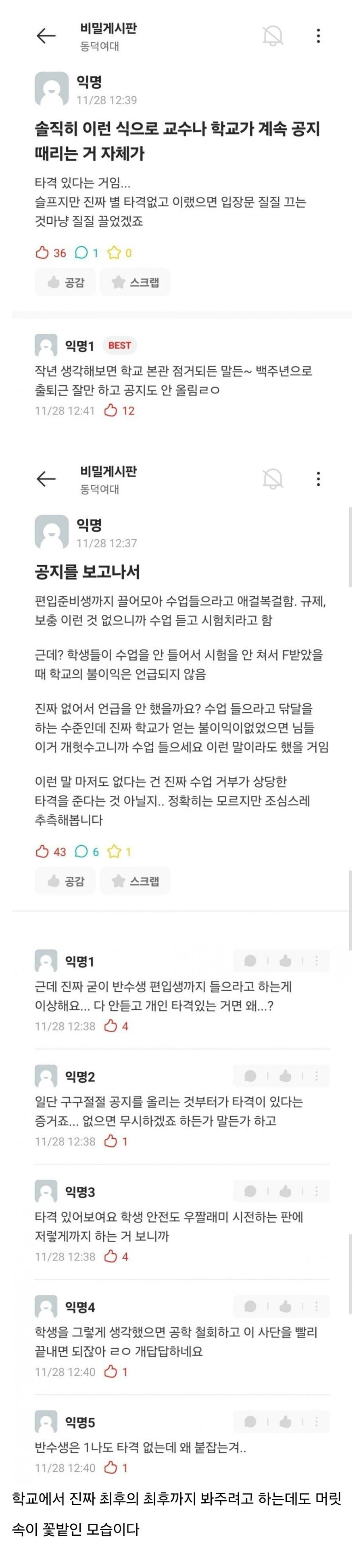 동덕여대 공지 에타 반응 ㅎㄷㄷㄷㄷㄷㄷ