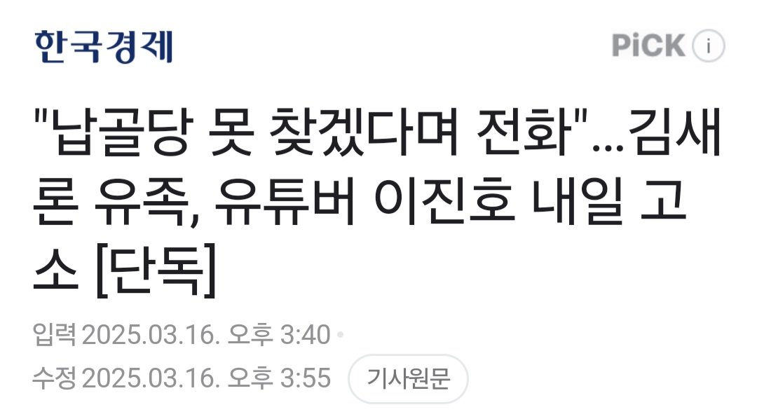 고(故) 김새론 유족이 명예훼손 혐의로 유튜버 이진호씨를 고소한다.