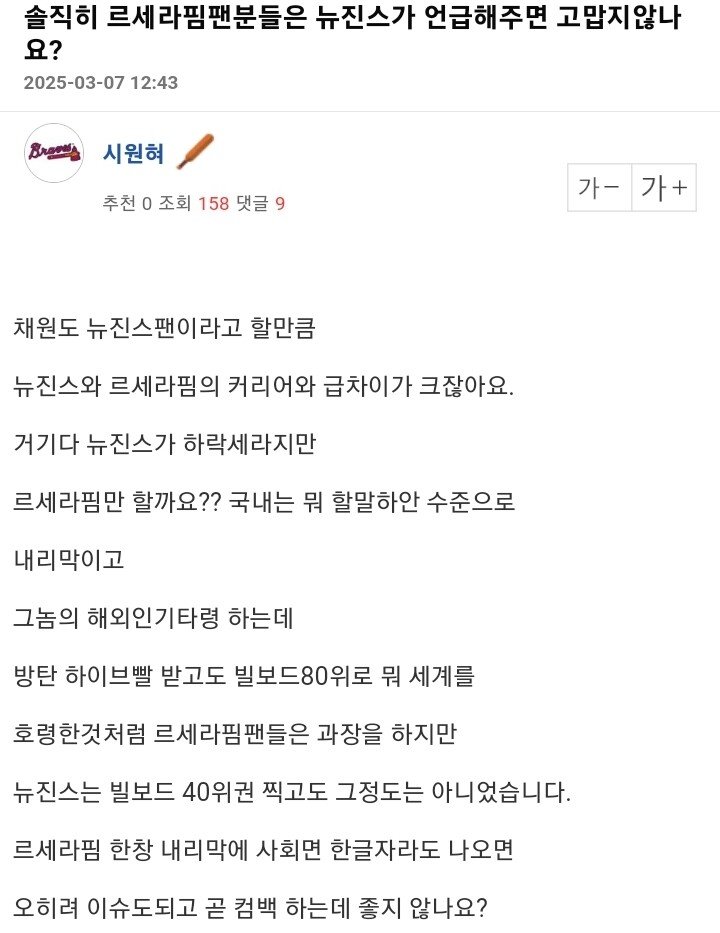 뉴진스가 르세라핌 언급해준건 호재라는 버니즈