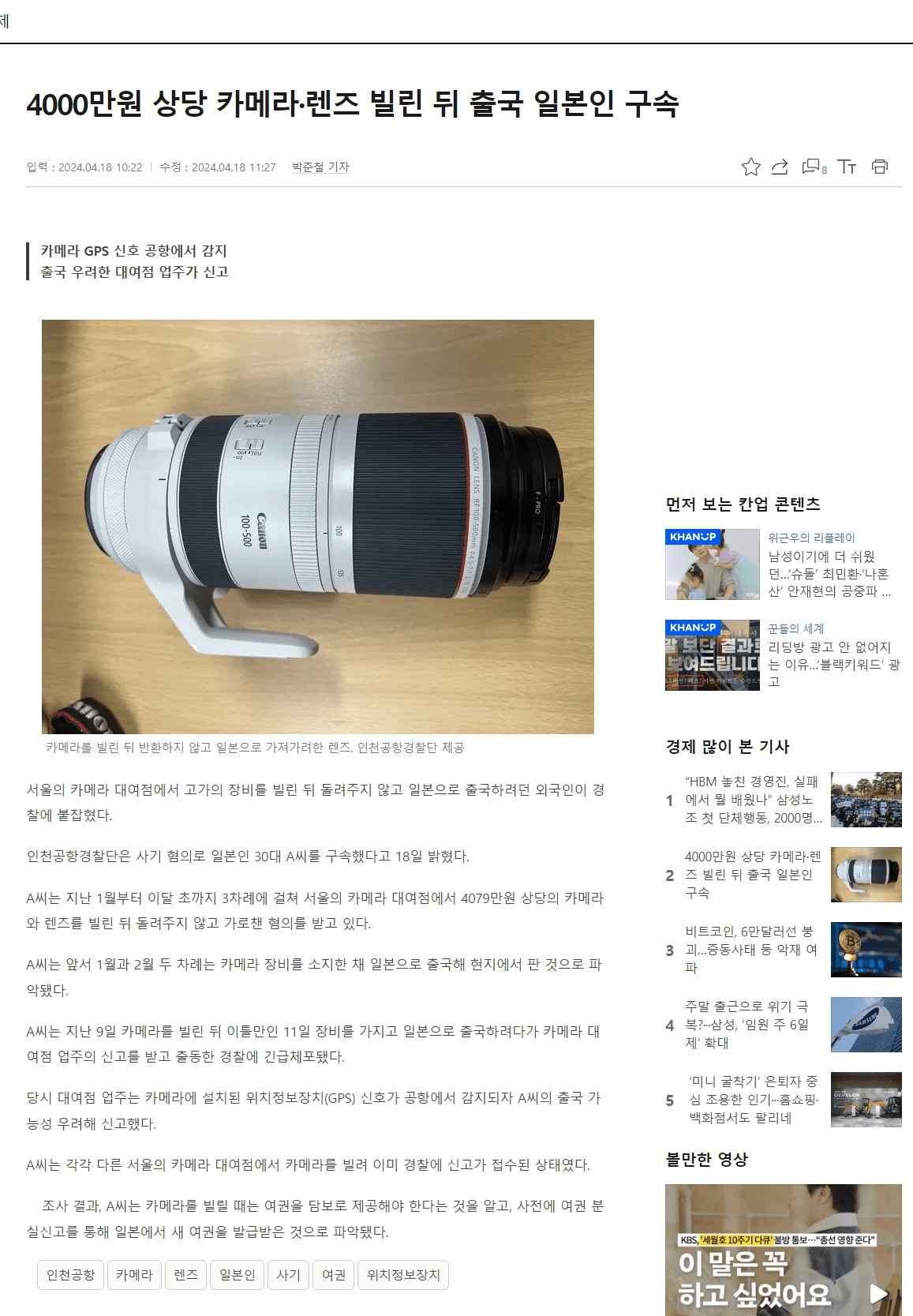 조사 결과, A씨는 카메라를 빌릴 때는 여권을 담보로 제공해야 한다는 것을 알고, 사전에 여권 분실신고를 통해 일본에서 새 여권을 발급받은 것으로 파악됐다.