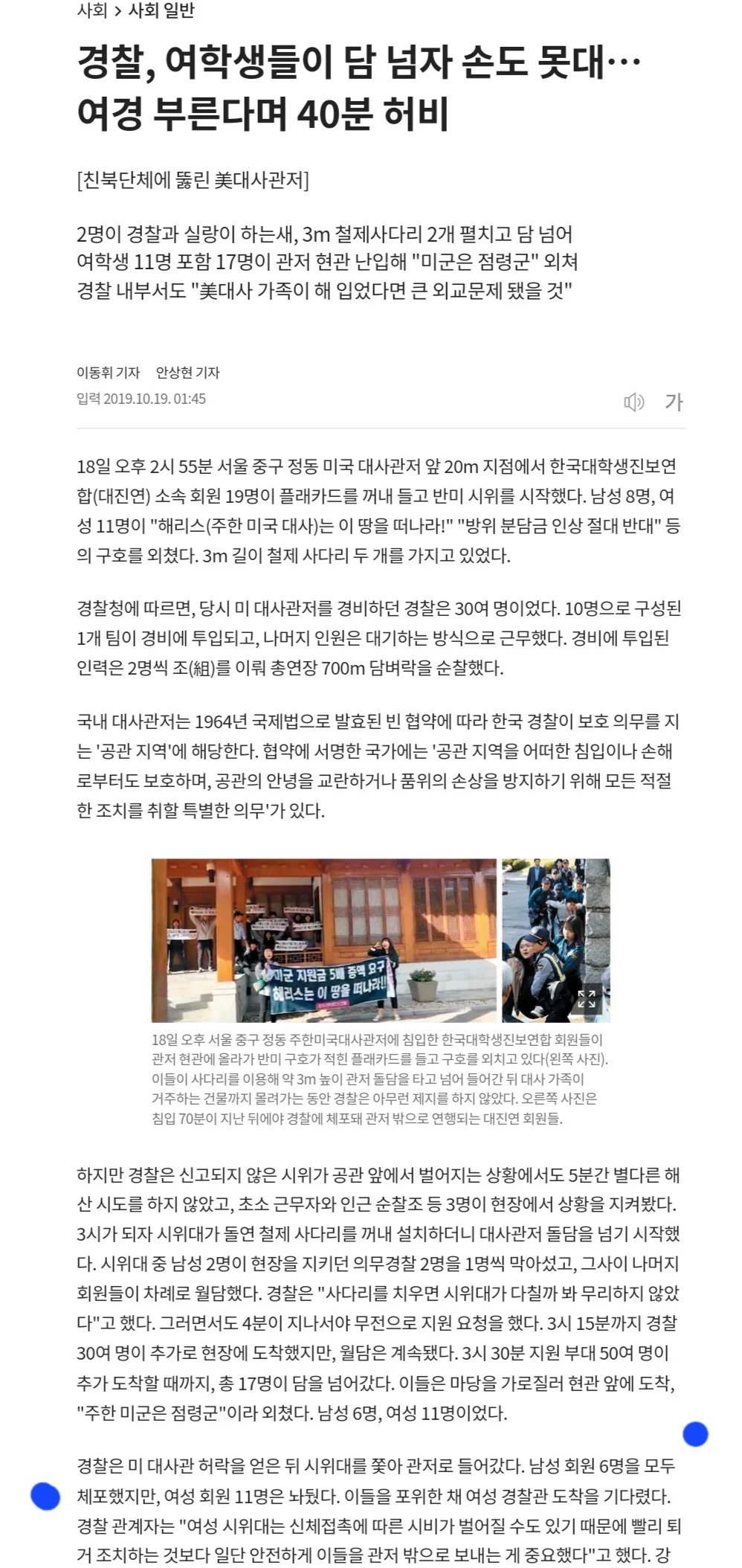 경찰, 여학생들이 담 넘자 손도 못대… 여경 부른다며 40분 허비
