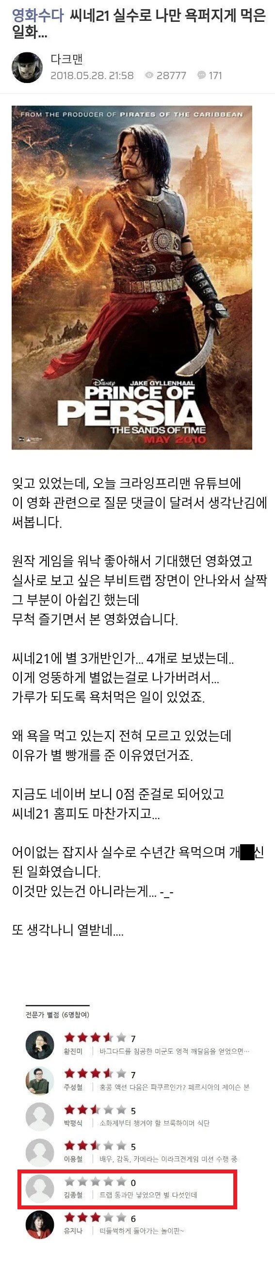 잡지사 실수로 욕 바가지로 먹은 영화평론가