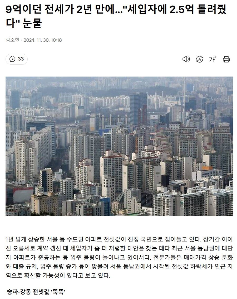 9억이던 전세가 2년 만에…"세입자에 2.5억 돌려줬다" 눈물