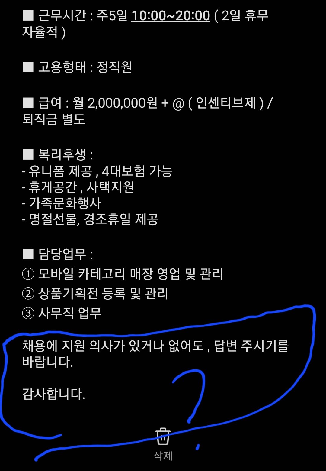 알바몬에 공개 이력서 올렸는데 이렇게 문자가 옴