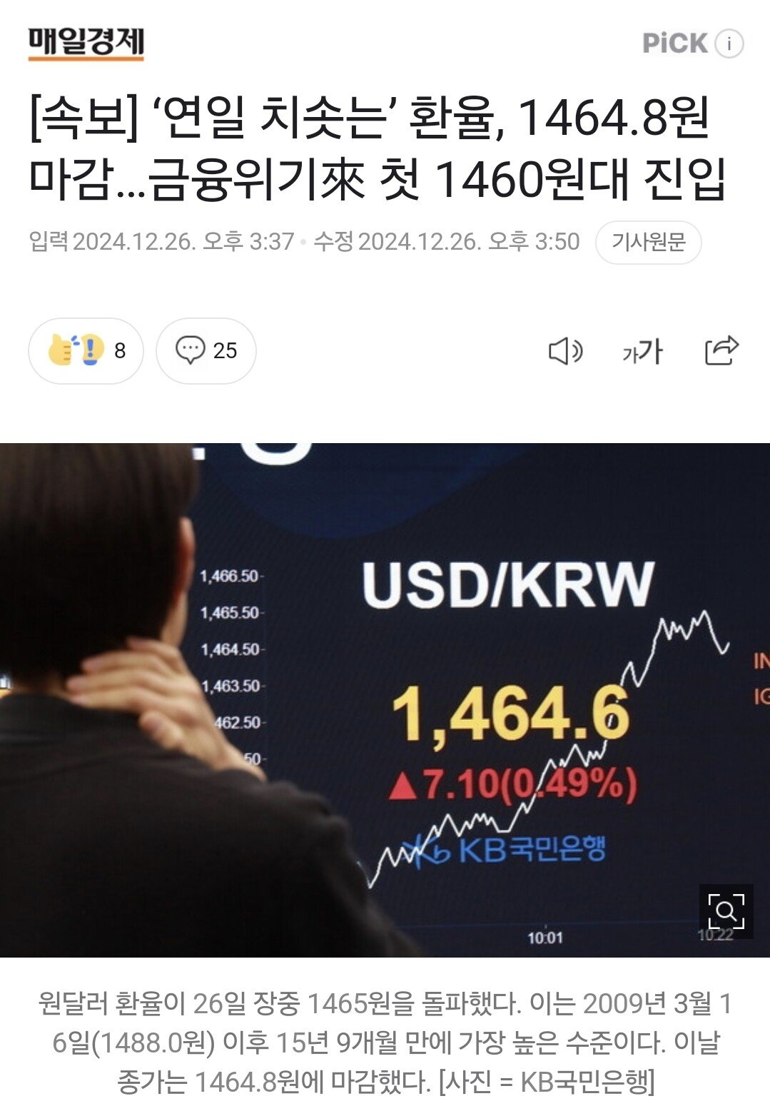 [속보] ‘연일 치솟는’ 환율, 1464.8원 마감…금융위기來 첫 1460원대 진입