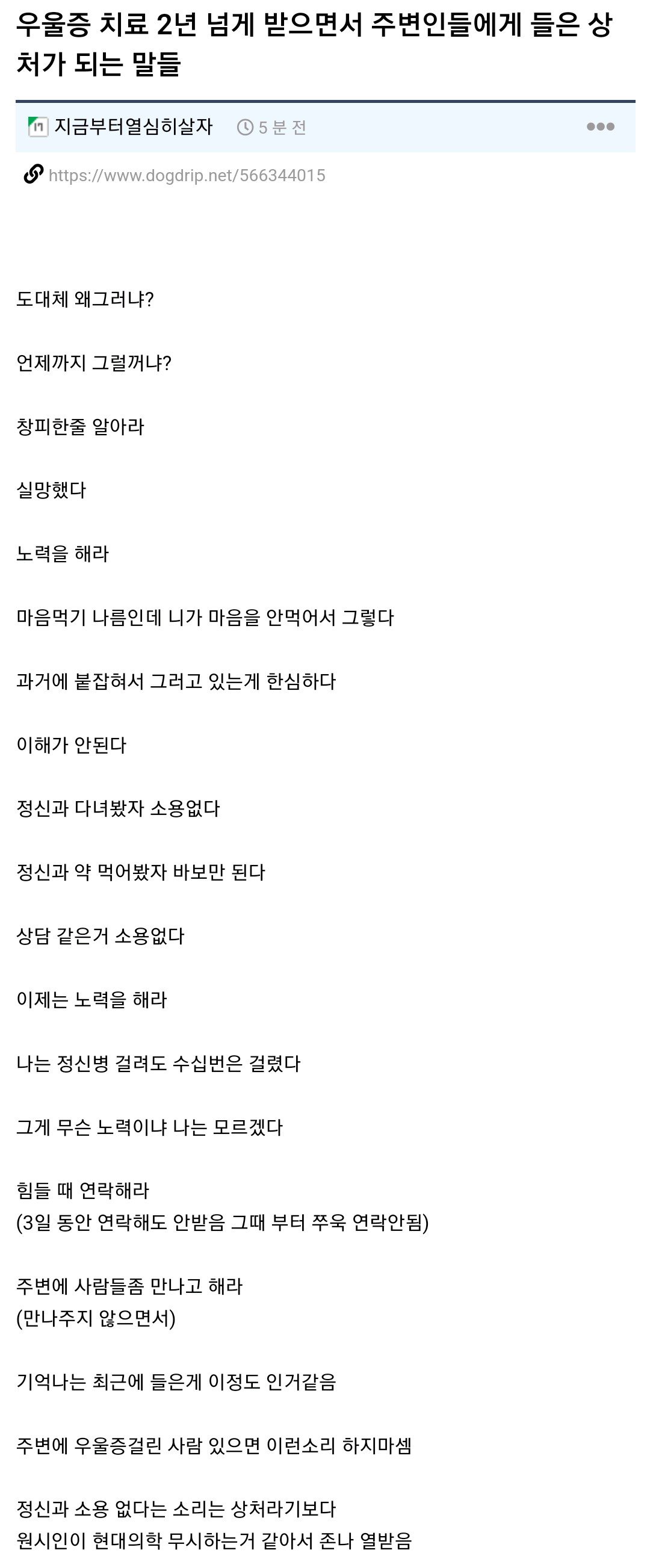 우울증 치료 2년 넘게 받으면서 주변인들에게 들은 상처가 되는 말들