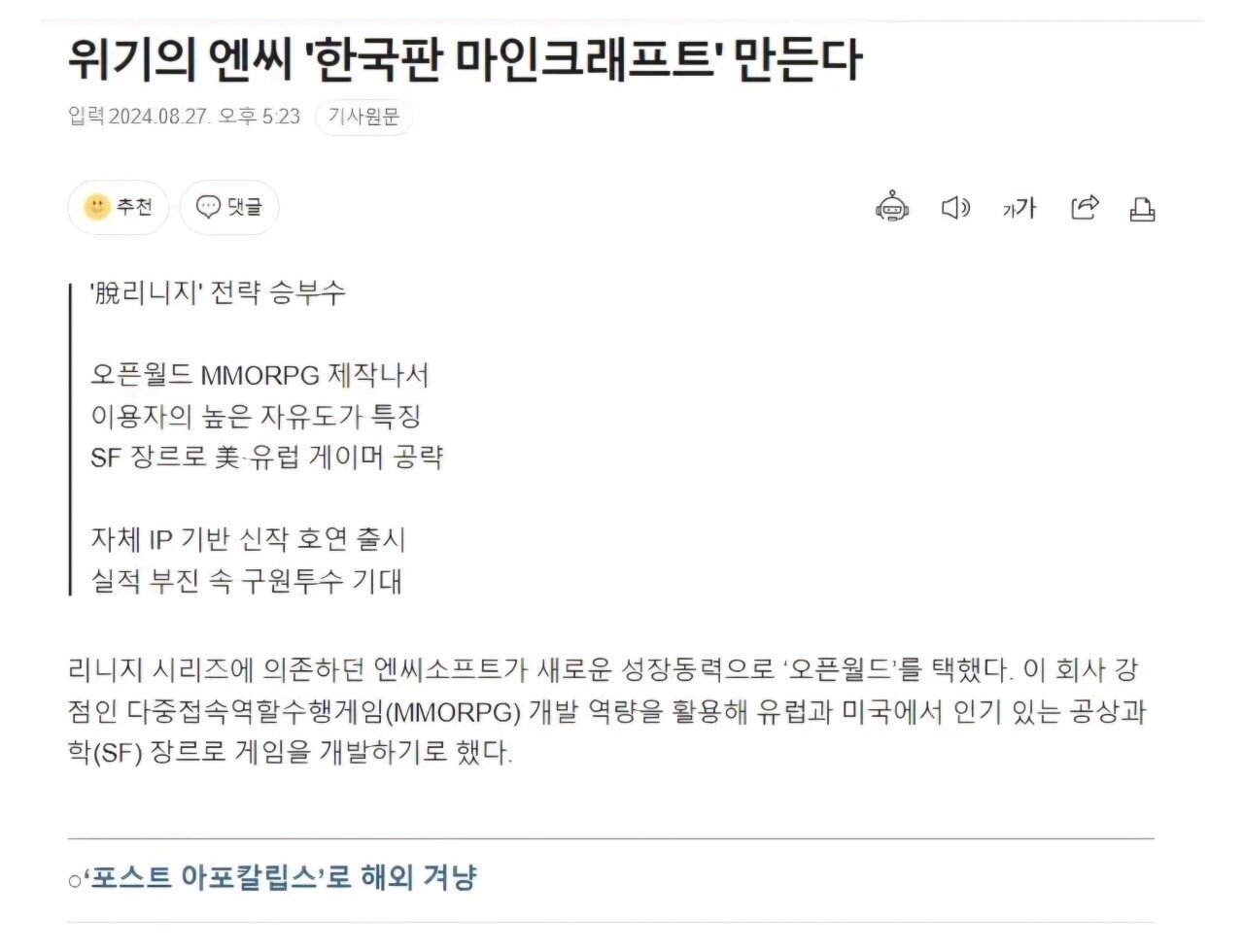 호연 출시에 위기처한 NC.. 새로운 메뉴 개발에 착수해