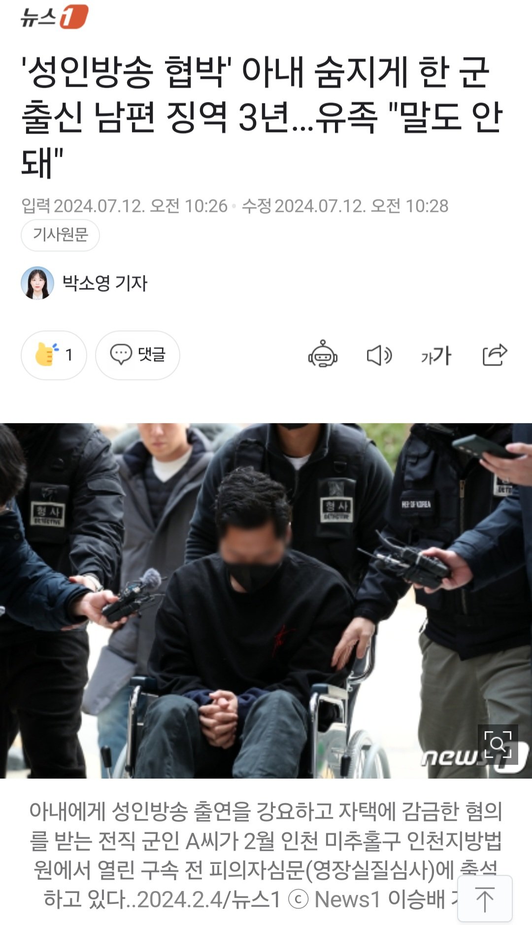 '성인방송 협박' 아내 숨지게 한 군출신 남편 징역 3년…유족 "말도 안돼"