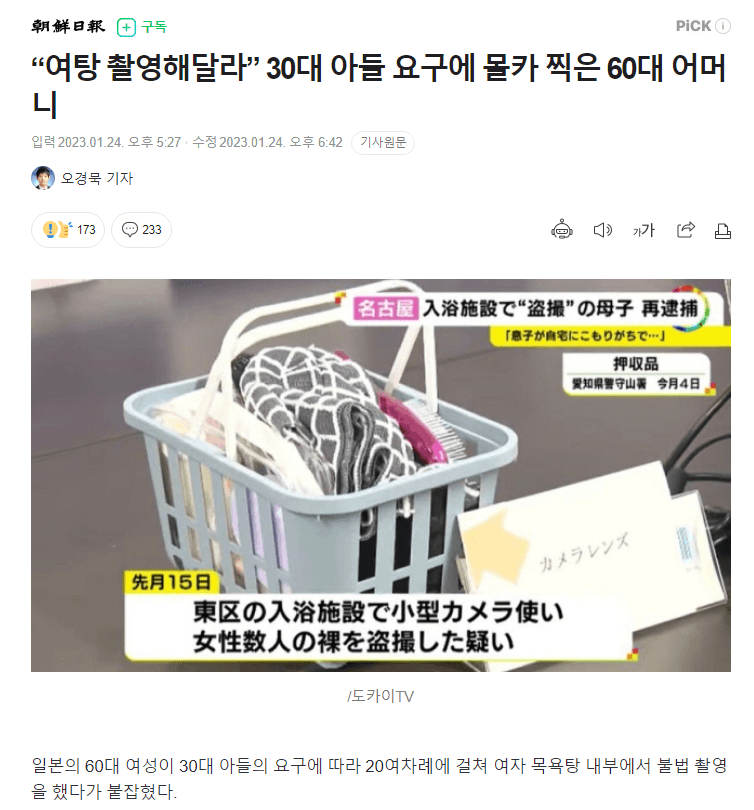 “여탕 촬영해달라” 30대 아들 요구에 몰카 찍은 60대 어머니