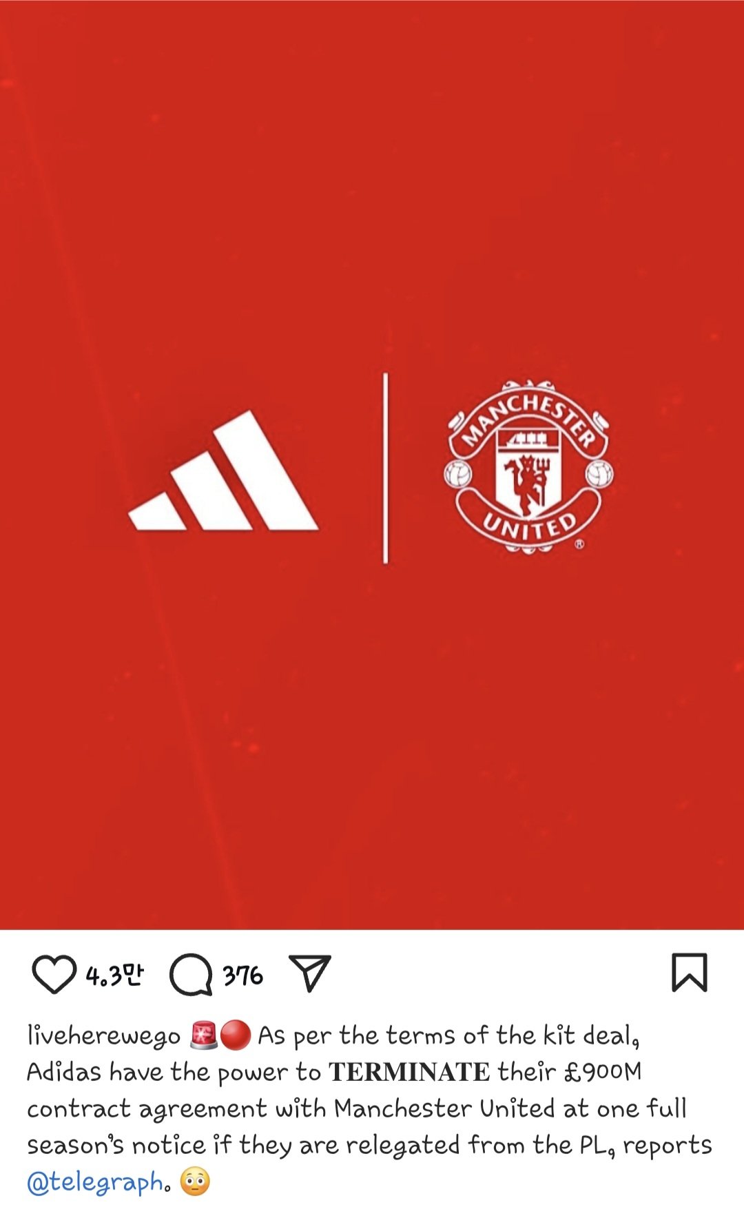 아디다스, 맨체스터 유나이티드 강등시 계약파기