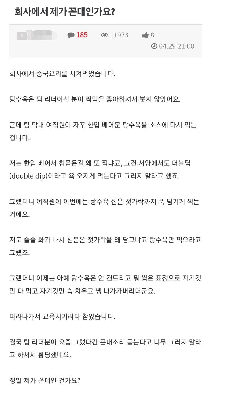 한입 베어문 탕수육... 꼰대 인가요?.JPG