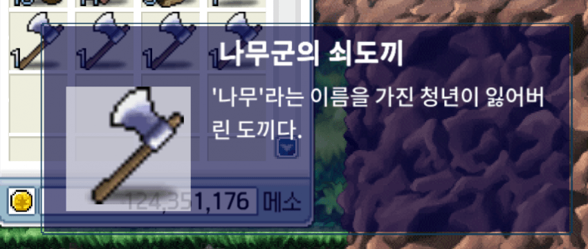 그중 금도끼 은도끼 퀘스트 진행중에 나무꾼의 쇠도끼 한번에 나와서 오 개이득 했는데