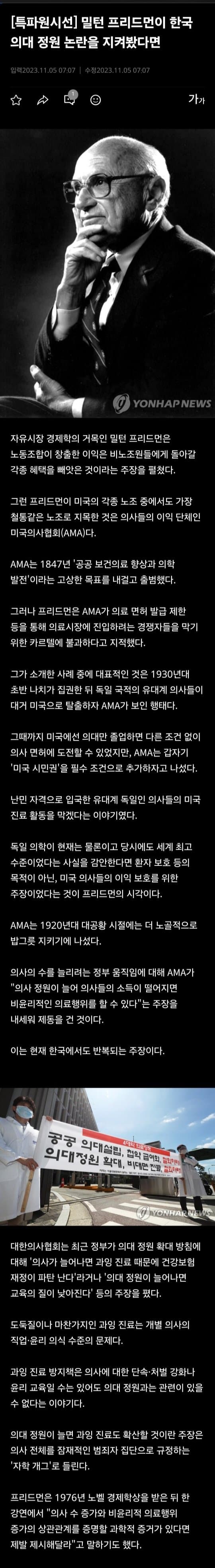 의사들의 인원제한에 대한 밀턴프리드먼의 생각