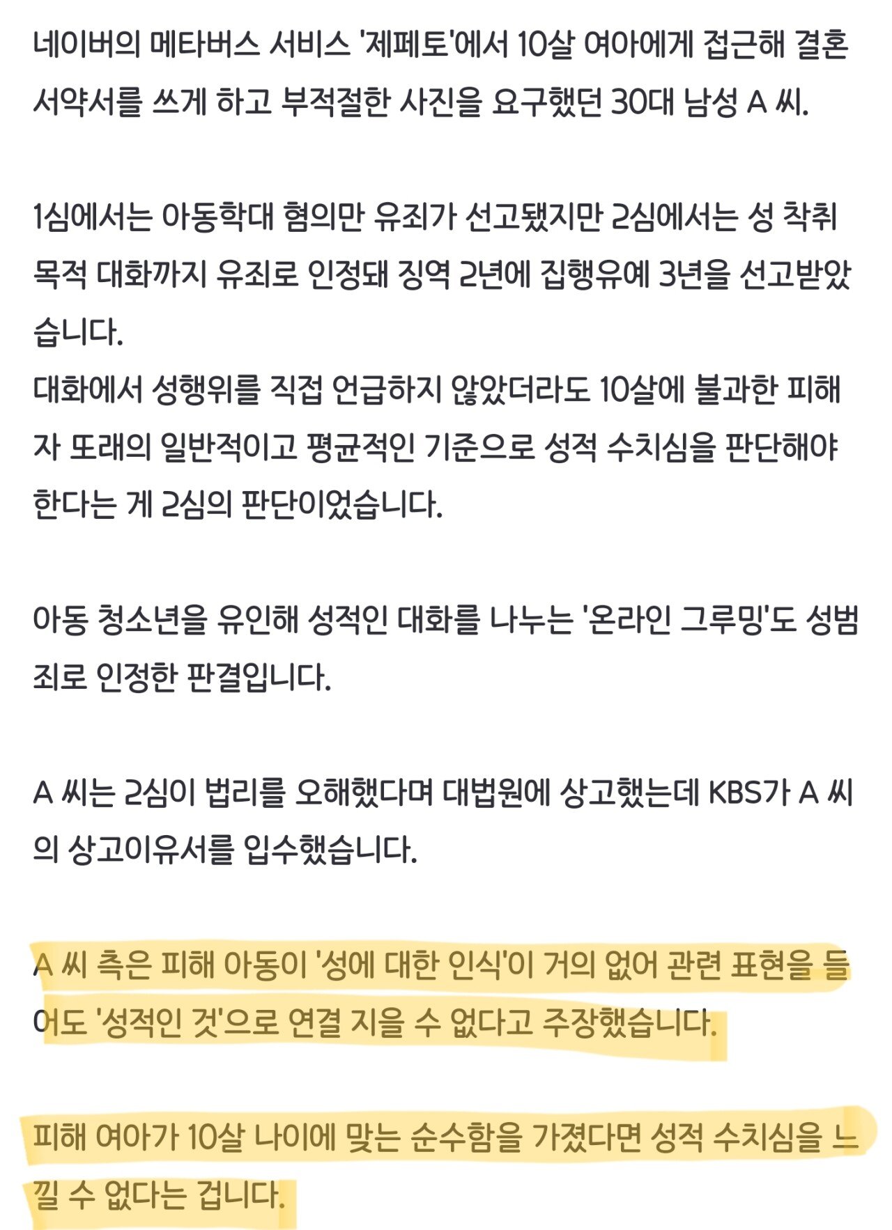 [단독] 10살 여아 ‘온라인 그루밍’에 무죄 주장…가해자 상고이유서 보니
