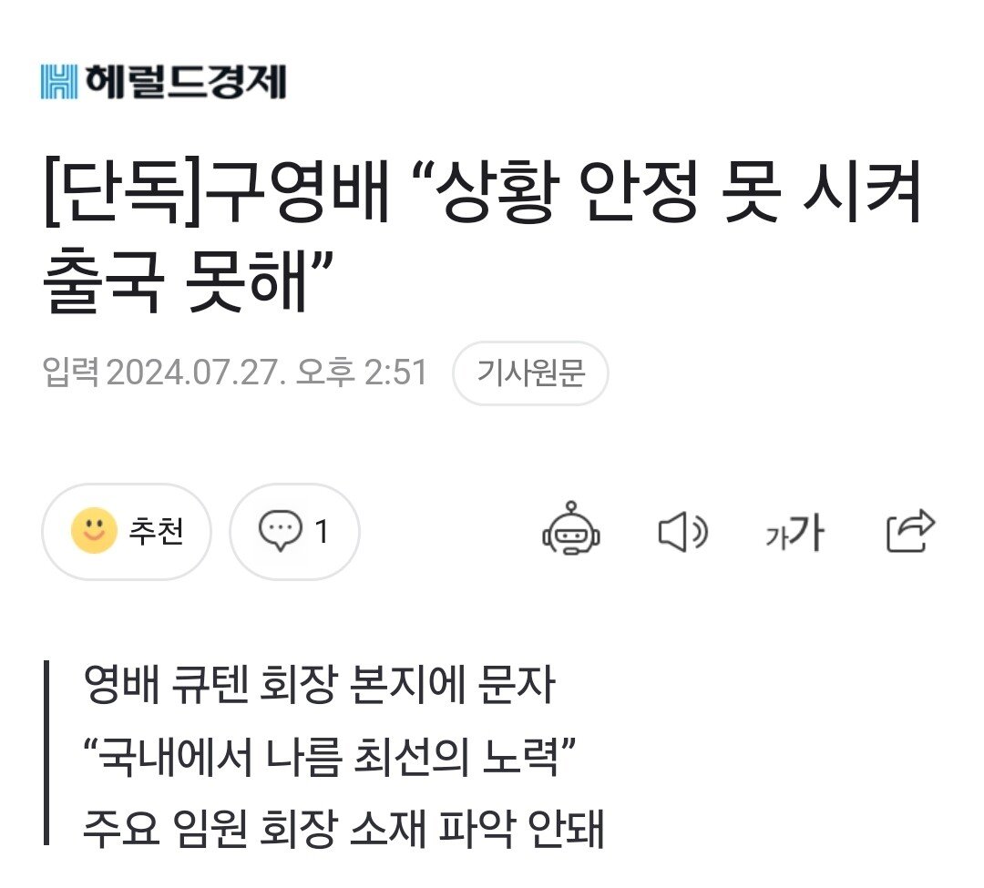 구 회장은 이날 본지에 문자를 보내 출국했냐는 기자의 질문에 “국내에서 나름 최선을 다해 답을 찾고 있다”며 이같이 말했다.