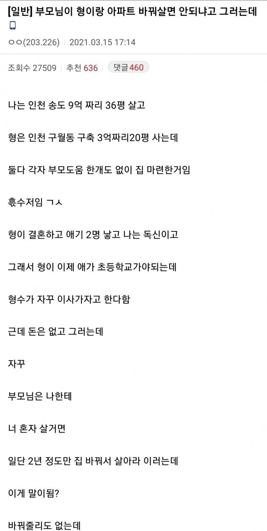 부모님이 형이랑 아파트 바꿔살면 안되냐고 그런다.jpg