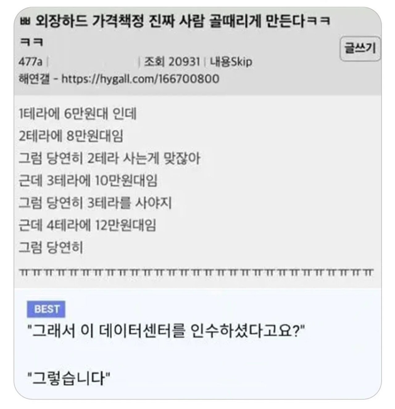 골때리는 외장하드 가격 책정.JPG