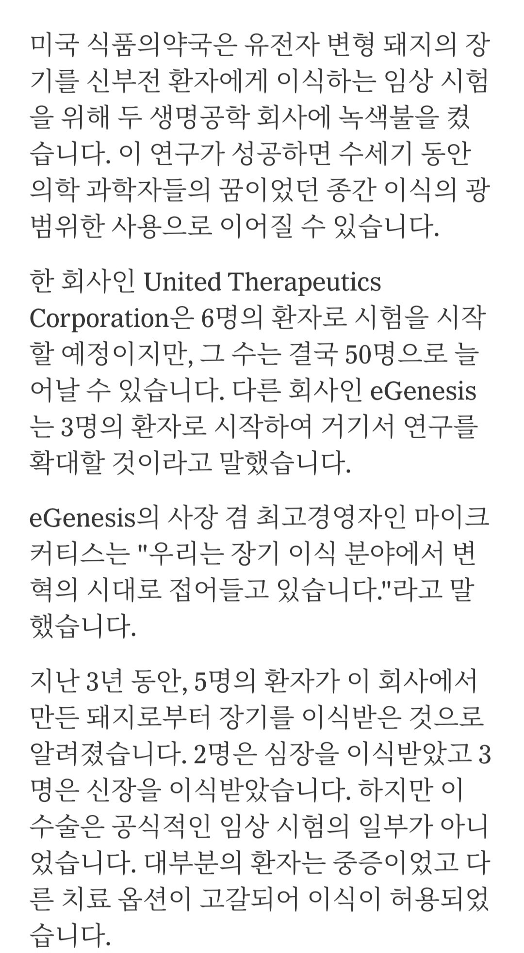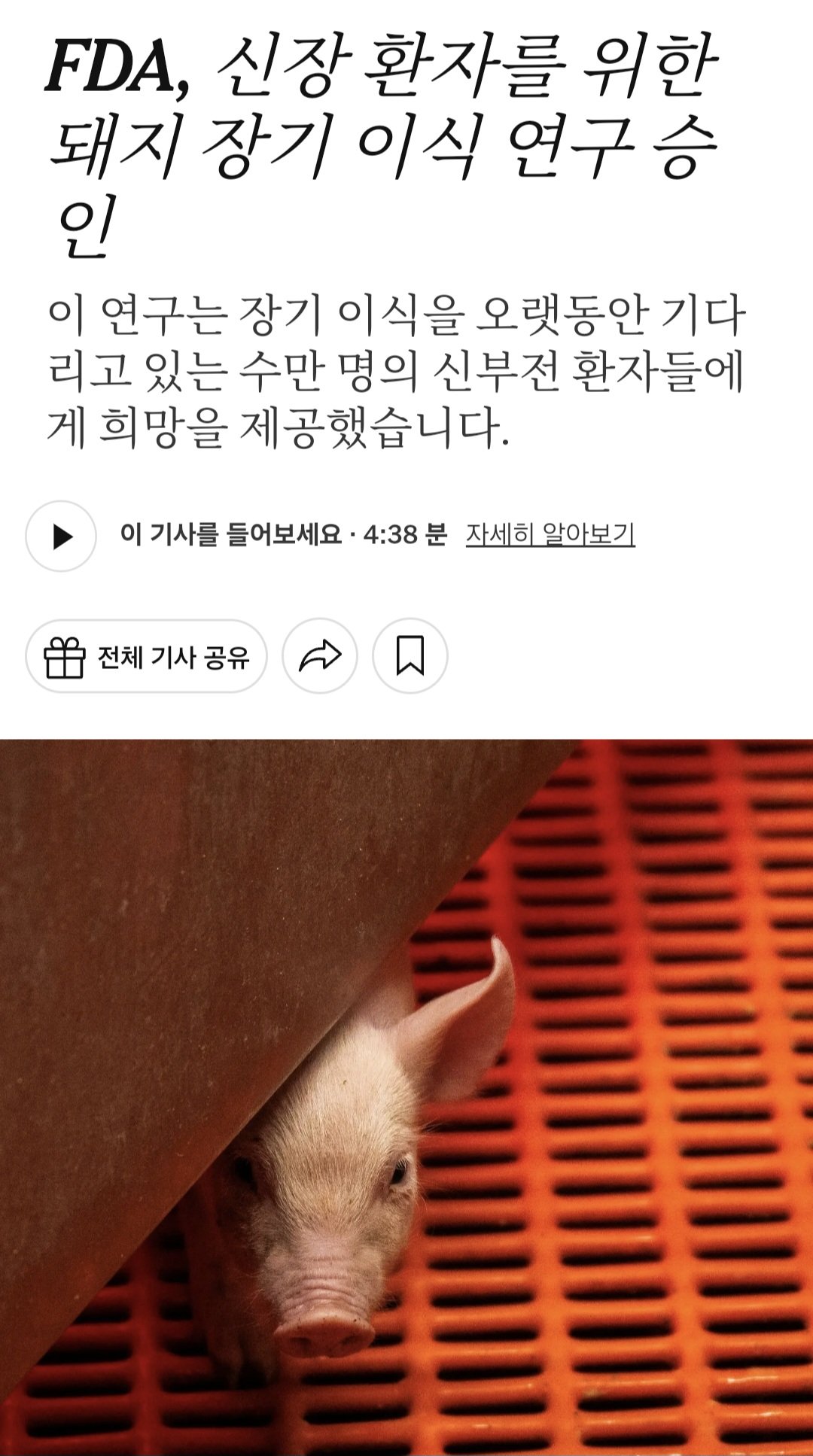 (미국)FDA, 신장 환자를 위한 돼지 장기 이식 연구 승인