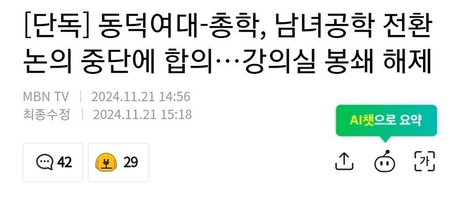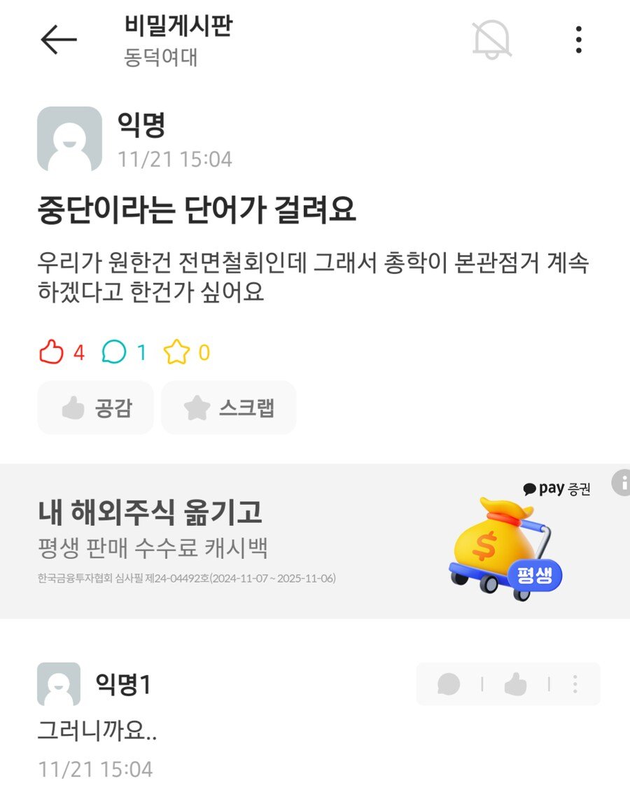 동덕여대 남녀공학 전환 '논의' 중단 발표...학생들 반응