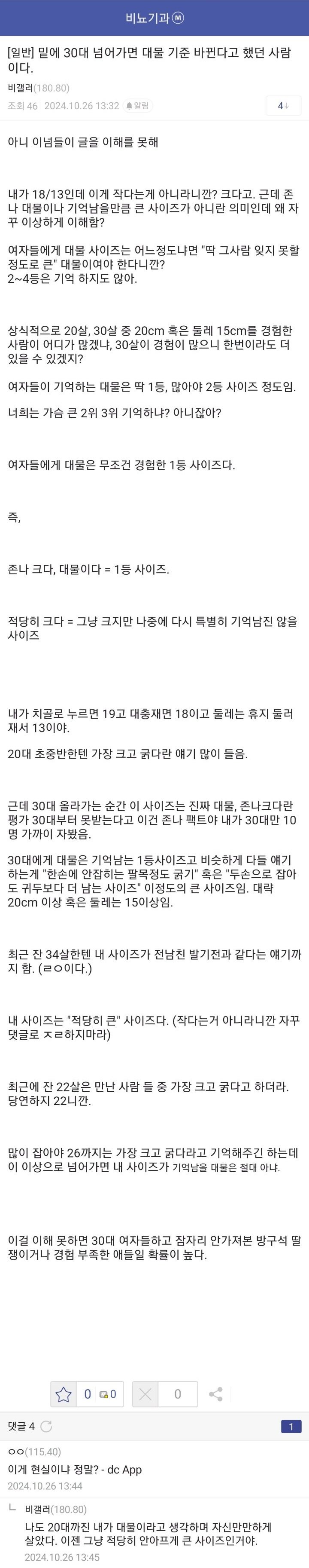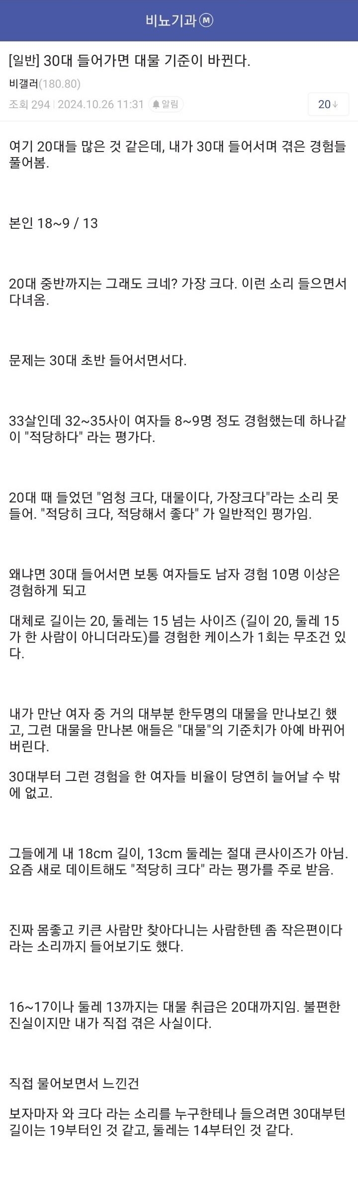 30대 들어서면 남자 대물 기준이 바뀐다.