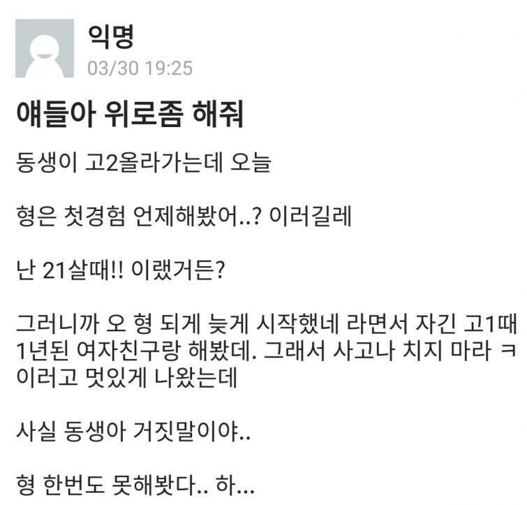 형은 첫경험 언제해봤어.jpg
