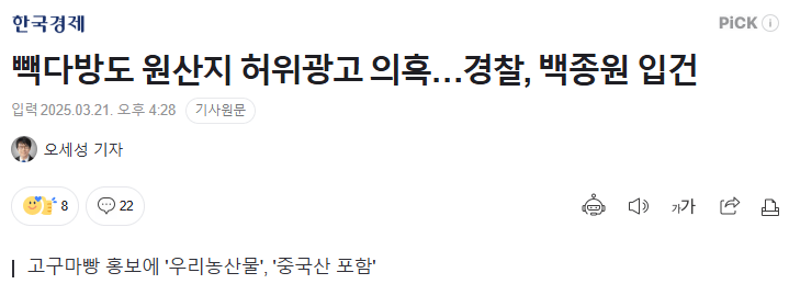 빽다방도 원산지 허위광고 의혹…경찰, 백종원 입건