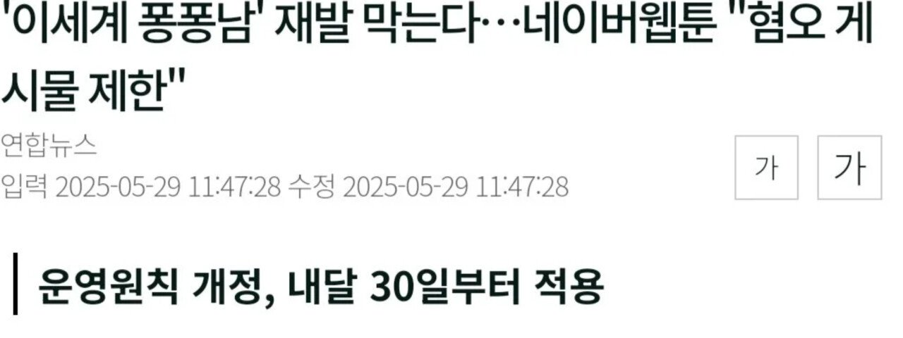 네이버 웹툰에서 부적합 새로운 가이드라인생김