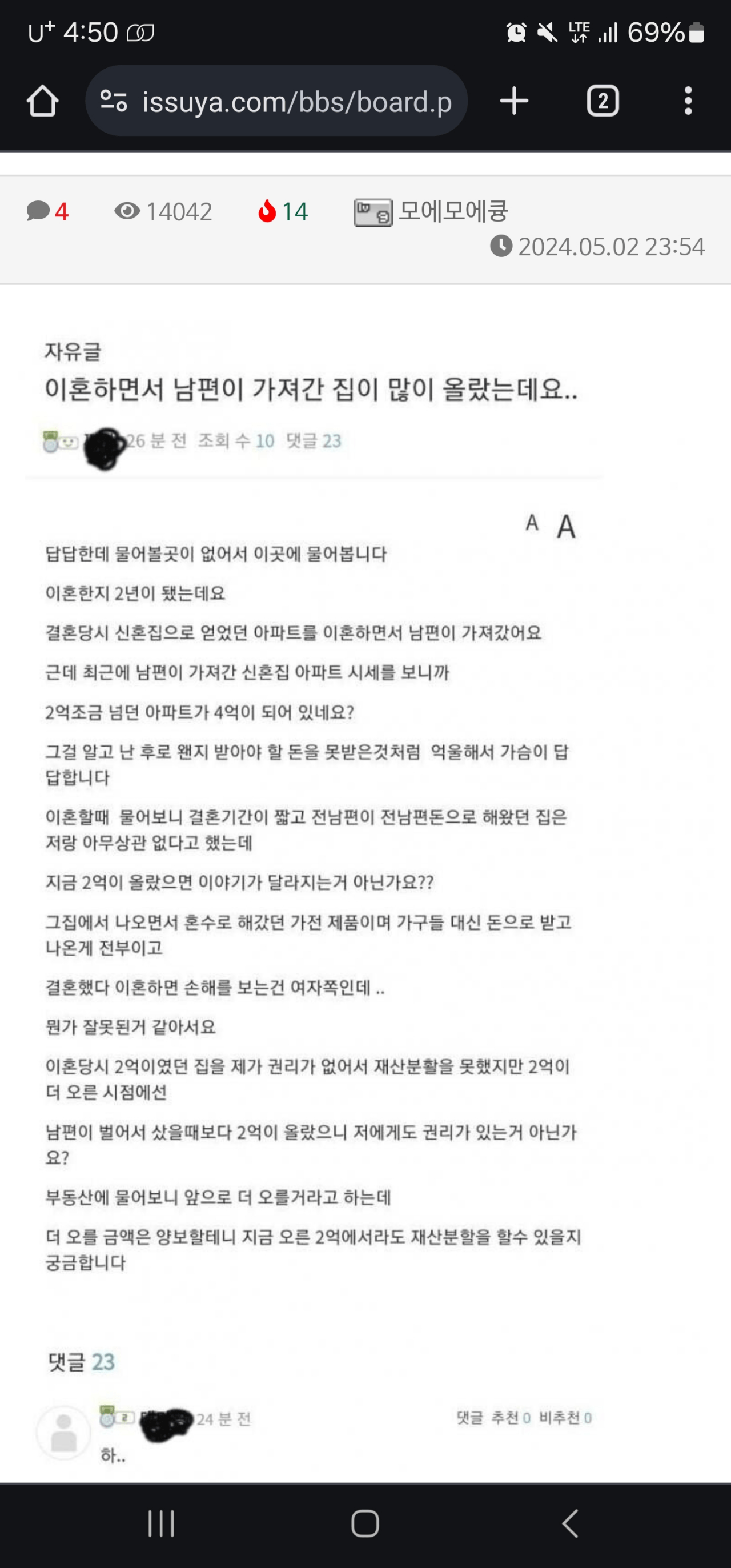 이혼 하면서 남편이 가져간 집이 많이 올랐는데요.