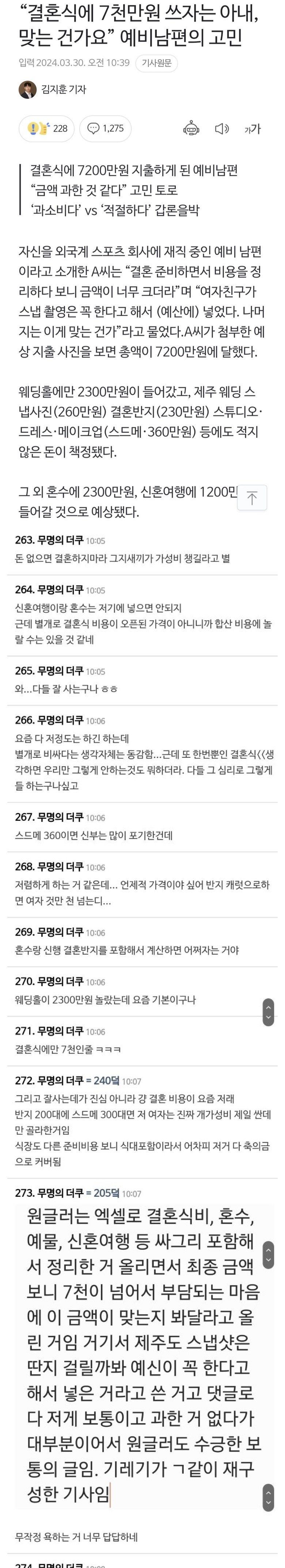 결혼식에 7천만원 쓰자는 아내, 맞는건가요