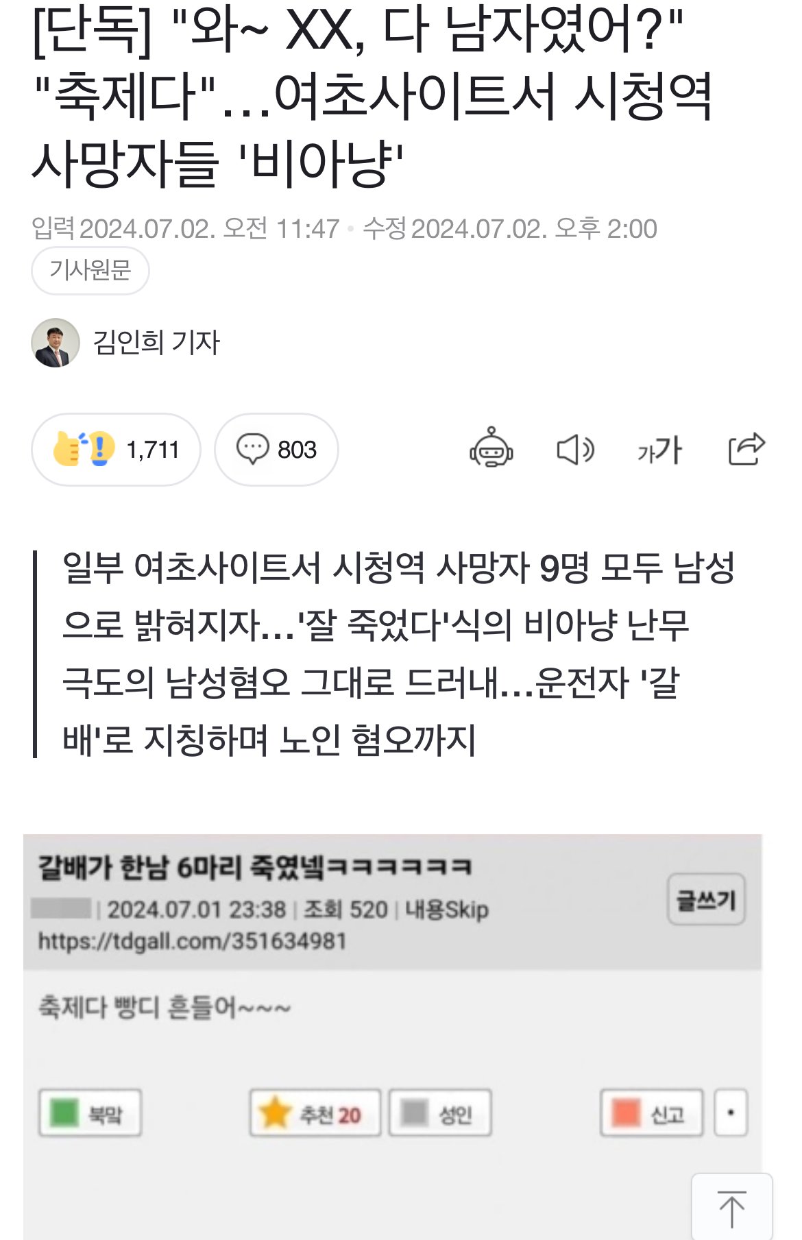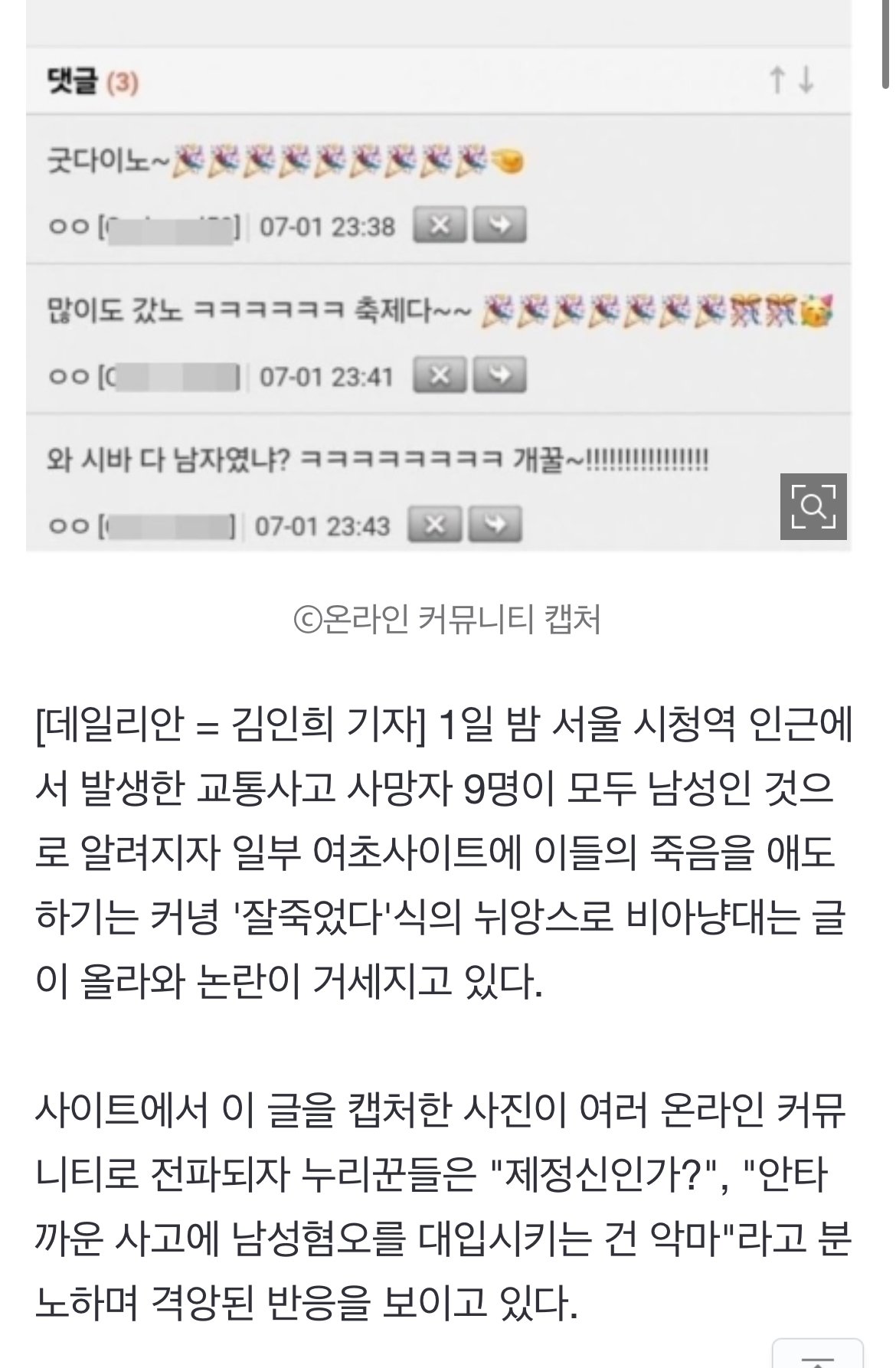 "와~ 시바, 다 남자였어?" "축제다"…여초사이트 뉴스뜸