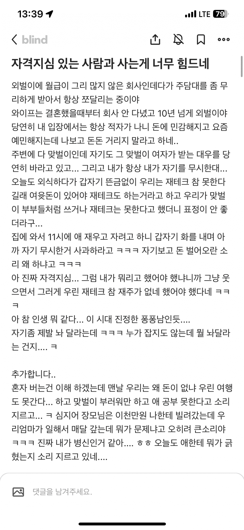 자격지심 있는 사람과 사는게 힘들다는 블라인
