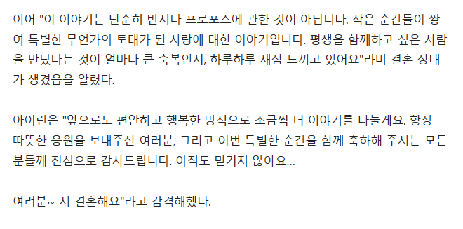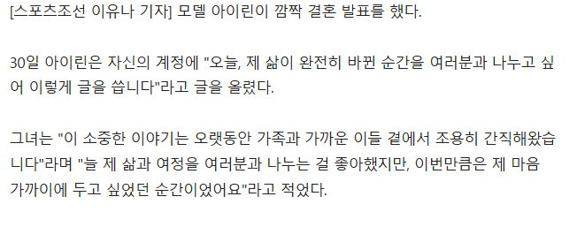 아이린, 열애설 없이 깜짝 결혼 발표 "평생 함께하고픈 사람 만났다"