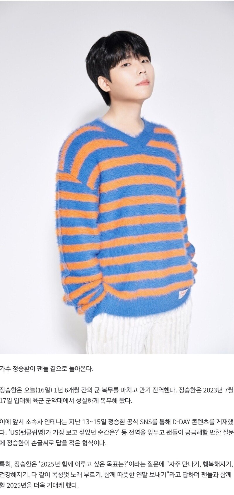 정승환, 오늘(16일) 만기 전역…‘감성 발라더’ 귀환